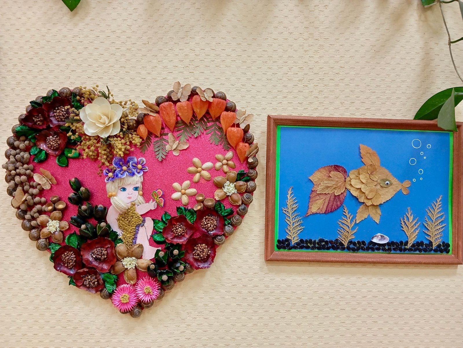 Ребята вместе с родителями потрудились на славу. К работе участники отнеслись серьезно и вложили много фантазии, терпения и труда. Материалом для аппликаций послужили цветы, веточки, шишки, листья, рябина, плоды шиповника и многое другое. Сколько творчества, выдумки в каждой работе!
