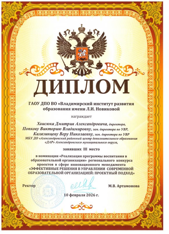 От всей души поздравляем команду нашего центра с заслуженным третьим местом в номинации «Реализация программы воспитания в образовательной организации» регионального конкурса проектов в сфере инновационного менеджмента «ЭФФЕКТИВНЫЕ РЕШЕНИЯ В УПРАВЛЕНИИ СОВРЕМЕННОЙ ОБРАЗОВАТЕЛЬНОЙ ОРГАНИЗАЦИЕЙ: ПРОЕКТНЫЙ ПОДХОД»! Эта победа — яркое подтверждение профессионализма, креативного подхода и системной работы по совершенствованию воспитательного процесса. Мы всегда готовы делиться лучшими практиками с профессиональным сообществом.